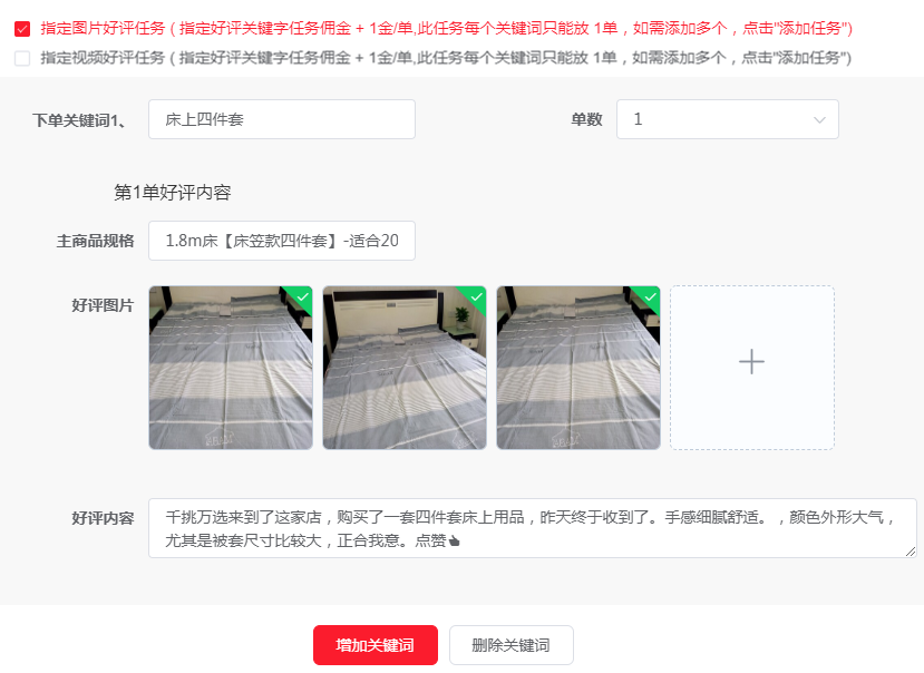 商家提供多个关键词,买家通过不同的补单关键词进店浏览,收藏,加购,下单。关键词搜索不单一是避开稽查的重要一步,因为真正买家肯定是通过各种不同关键词进店购买,我们平台的多关键词规则更类似真实购买,为大批商家朋友成功避开了降权